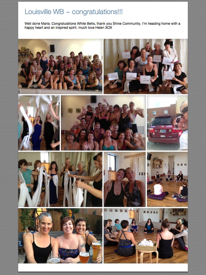 Here is collage of White Belt training shared by our wonderful trainer Helen Terry. Silly me I took my camera but took very few pictures… all of other people. I’ll do better next time!